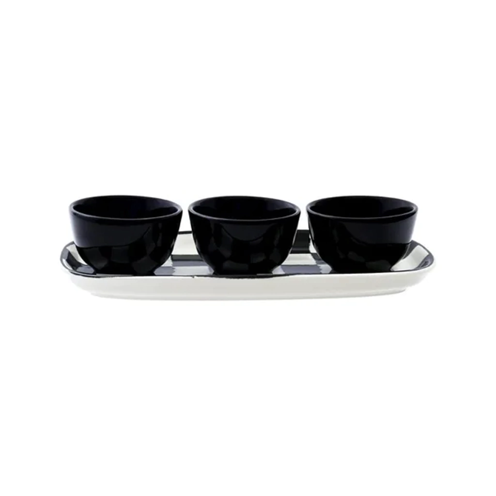 El juego de servir Damas es perfecto para completar su servicio de comidas y aperitivos. Compuesto por una bandeja y tres cuencos, se puede usar con salsas y guarniciones. La bandeja sirve de soporte para los cuencos y facilita el traslado de la comida a su ubicación deseada.